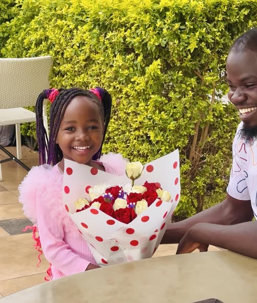 In another warm moment, the daughter is seen beaming as Mulamwah presents her with a bouquet of red and white roses.