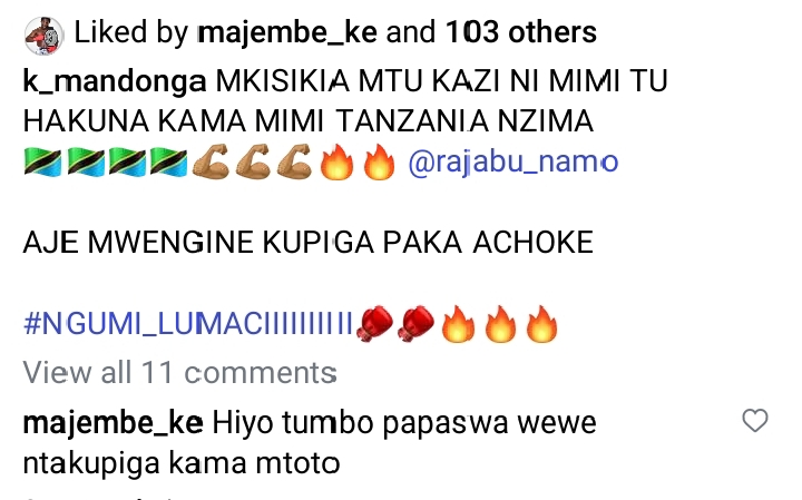 Earlier, Mandonga publicly challenged Majembe to a boxing match.